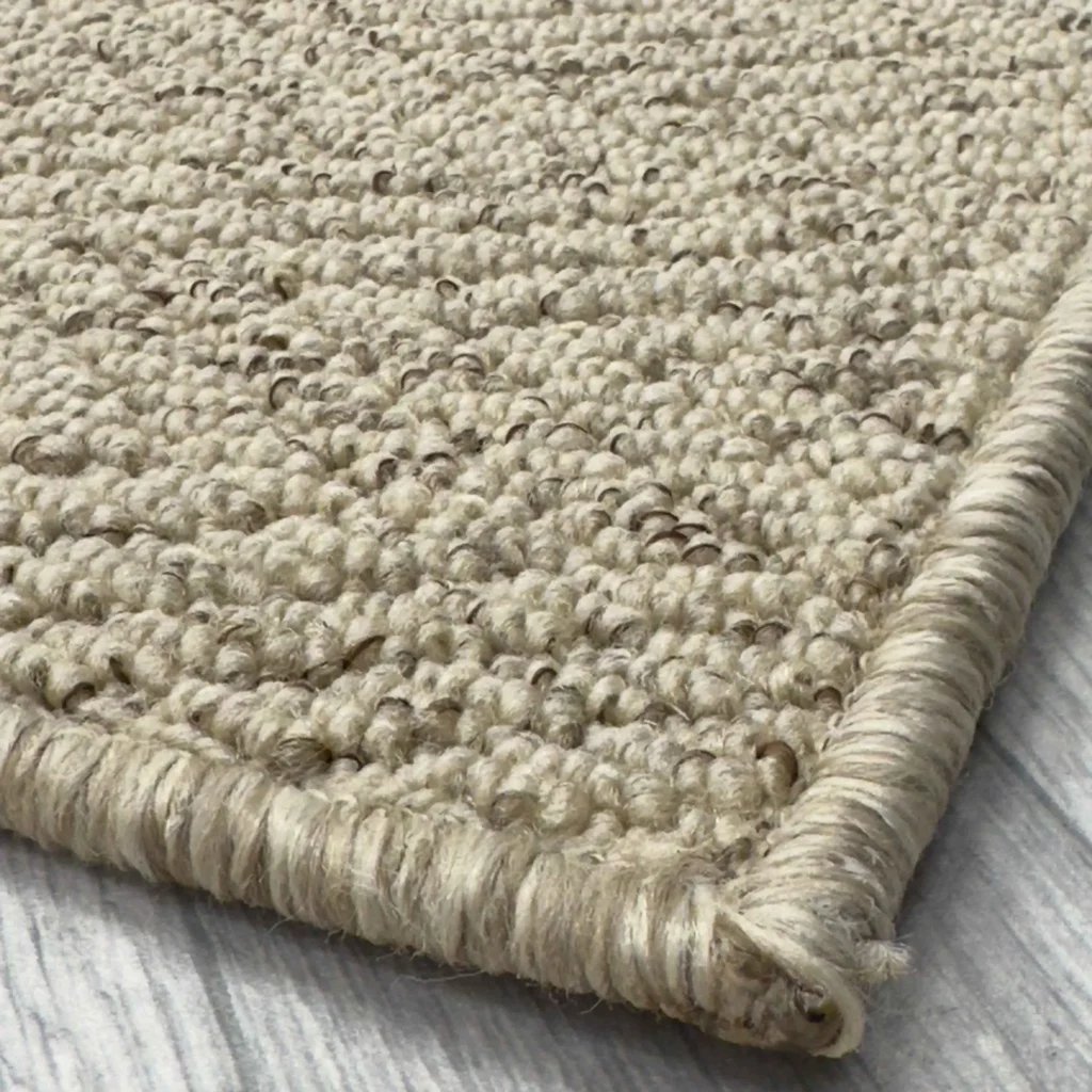 Soft, durable Carpet Runner in warm biscotti beige with classic herringbone design. Stain-resistant polypropylene loops provide comfort and longevity, ideal for hallways, living rooms, and dining areas, combining practical maintenance with timeless style for busy family homes.