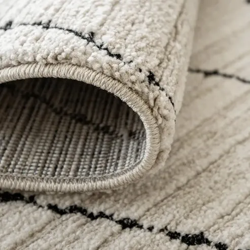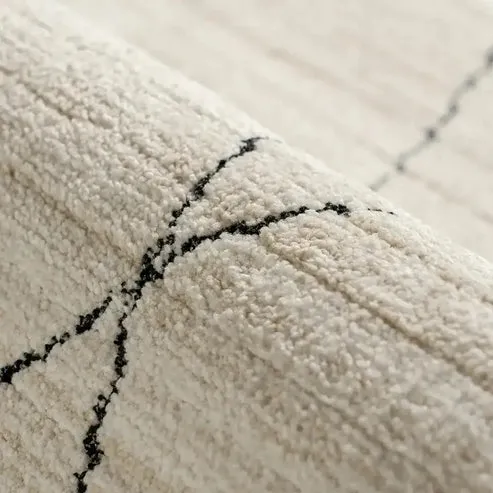 Refine your décor with the Charcoal Narrow Lines Geometric Ivory Carpet. Its ivory base and charcoal lattice design create a calm, modern aesthetic. The irregular hand-drawn pattern brings subtle texture and character to any interior. Crafted from soft matte polyester, it offers a luxurious, smooth feel underfoot. The 10 mm high pile provides warmth and comfort, perfect for relaxed, elegant spaces. Power-loomed in Belgium, this carpet combines precision craftsmanship with long-lasting quality. Ideal for living rooms, bedrooms, guest rooms, and offices. Simple to maintain with spot cleaning or professional care when needed.