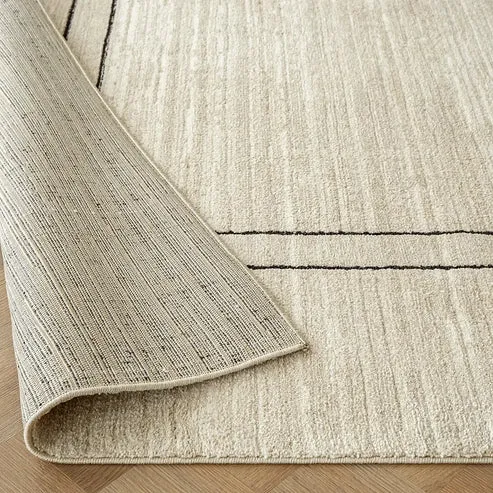 Refine your interiors with the Contrast Black Border Beige Carpet, a piece that balances modern simplicity and timeless charm. The soft beige tone paired with a bold black rectangular border adds structure and visual appeal to any space. Its textured stripe base brings depth and warmth, perfect for creating a serene, contemporary ambiance. Made from high-quality polyester, it features a soft matte surface with a high pile for plush comfort. The 10 mm pile height ensures durability and a cozy feel underfoot. Designed for both style and performance, it suits living rooms, bedrooms, guest rooms, and offices alike. Easy to maintain with simple spot cleaning or professional care when needed.
