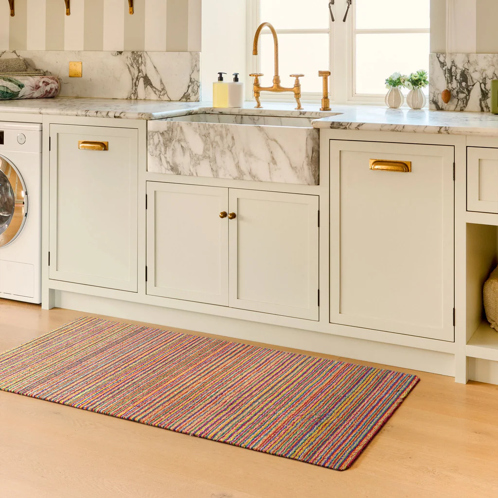 The Candy Bright Stripe Washable Runner adds cheerful style and practical performance to your floors. Featuring vibrant stripes and a washable design, it’s easy to clean and ideal for busy hallways, kitchens, or entryways while brightening your space with bold color.