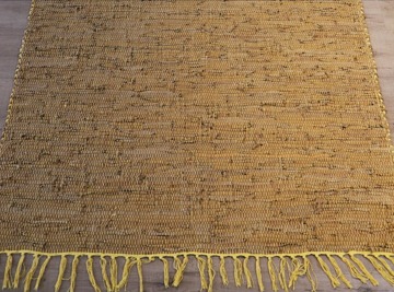 The LR-07 Yellow Brown Leather Rug by Carpet Dubai features a warm blend of yellow and rich brown tones, adding elegance, brightness, and depth to any interior. Crafted from premium genuine leather, it offers a soft, luxurious texture with long-lasting durability and everyday comfort. Ideal for modern and classic spaces, this rug reflects our expert leather rug service and superior craftsmanship.