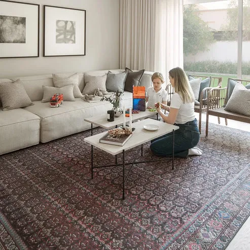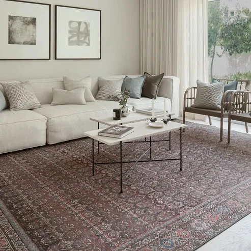 The Traditional Repeating Pattern Maroon-Red Carpet brings timeless beauty and rich color into your home. Designed with a deep maroon-red base, it features intricate blue and pink accents for a luxurious look. The ornate border and classic repeating pattern create a sophisticated visual texture that enhances any space. Crafted from high-quality polyester, its matte surface and low 3 mm pile ensure comfort and durability. Perfect for living rooms, bedrooms, dining areas, or offices, it adds warmth and refinement to your décor. Expert craftsmanship and easy-care qualities make it a practical yet stylish choice for modern living.