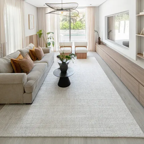 Elevate your interior with the Henry Bianca Tranquil Textured Ivory Carpet, a timeless blend of comfort and sophistication. Its ivory pearl tones and subtle textured design create a calming ambiance perfect for contemporary spaces. Crafted from bio silk and combed cotton, this carpet delivers a soft, luxurious feel with lasting durability.
