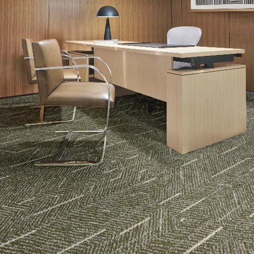 Angular Times Office Carpet ek bold aur modern design offer karta hai jo chevron base par narrow angular flashes ke sath space ko dynamic look deta hai. Iska structured loop pile texture professional offices ke liye perfect balance banata hai—style aur durability ka. Recycled nylon yarn aur advanced backing system isay eco-friendly aur long-lasting choice banata hai.