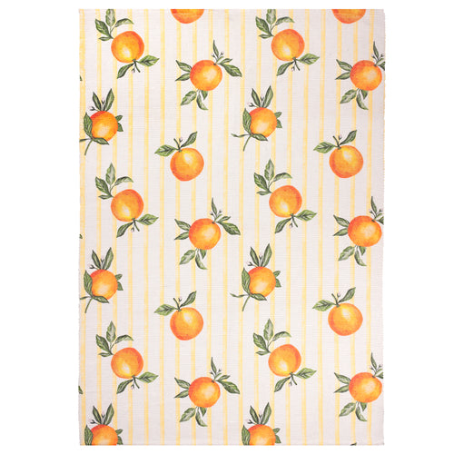 The Fruits Oranges Outdoor Rug – Yellow adds a cheerful touch to indoor or outdoor spaces. Hand-painted orange design on classic gingham stripes. Lightweight, durable, and machine washable for easy maintenance.