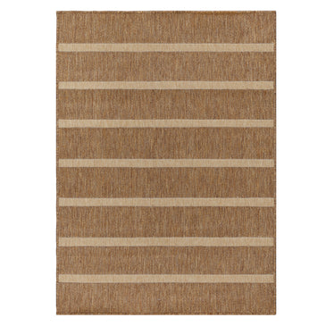 Add a natural touch to any space with this jute-effect striped rug. Woven design fits perfectly in patios, decks, or living areas. Durable, low-maintenance, and stylish for indoor or outdoor use.