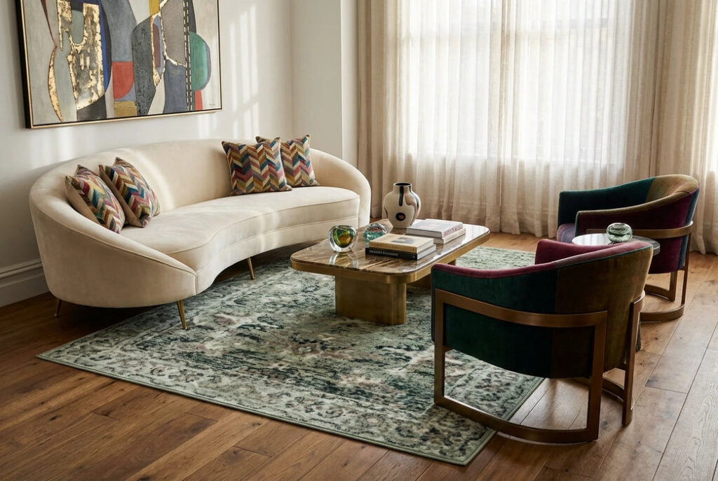 The MAESTRO New Trad Sage Rug features a soothing sage tone with a classic traditional design. Soft and durable, it brings a calm, elegant feel to any room while offering long-lasting comfort, making it perfect for both modern and classic home interiors.