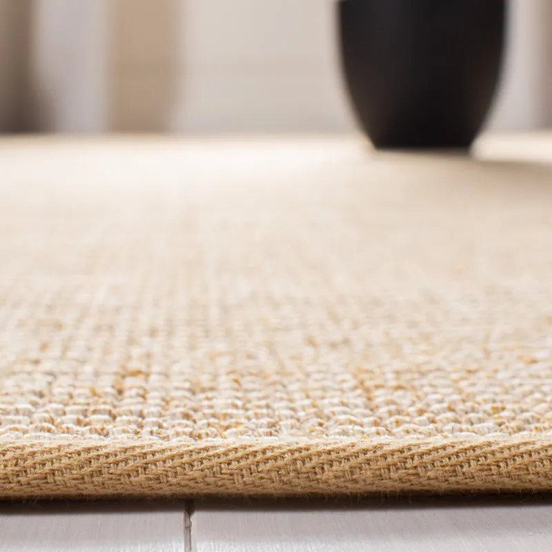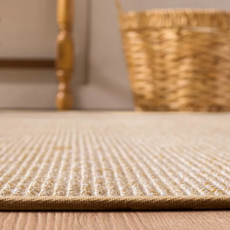 Ivory Solid Sisal Jute Rug from Sisal Carpets features a durable machine-woven construction made with natural fibers. Its clean solid texture and neutral ivory tone create a simple, versatile look while offering stain-resistant durability for reliable everyday indoor use.