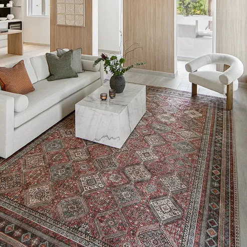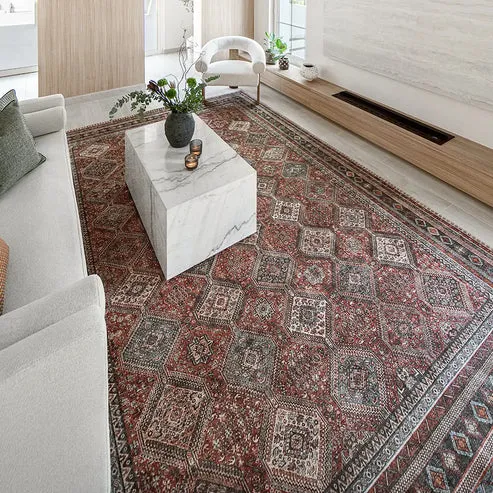 Enhance your interiors with the Ornate Border Diamond Pattern Carpet. Its shades of rust, charcoal, beige, and sea blue create a warm and inviting atmosphere. The all-over diamond pattern combined with an ornate border adds timeless elegance with a subtle vintage touch. Crafted from durable polyester with a matte finish, it features a low pile for practical daily use. Power loomed in Turkey, ensuring long-lasting quality and consistent craftsmanship. With a 3 mm pile height, it offers a soft underfoot feel while remaining easy to maintain. Perfect for living rooms, bedrooms, dining areas, and offices, it complements both traditional and contemporary décor. Spot clean or professionally clean as needed for effortless upkeep.