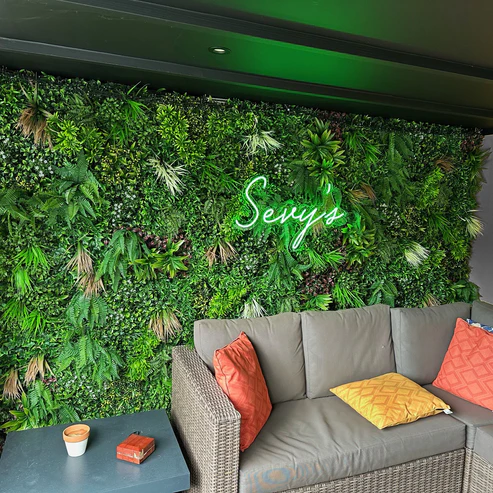 Premium Artificial Spring Green Living Wall Panel features fresh spring-green foliage, creating a vibrant, realistic, and low-maintenance decorative wall solution.